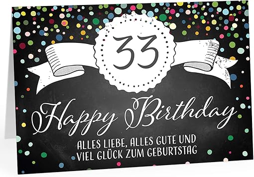Xxl Geburtstagskarte A4 Tafel Look Konfetti Mit Umschlag Gluckwunsch Zum 33 Geburtstag Edle Und Hochwertige Klappkarte Grusskarte Maxikarte Extra Gross Amazon De Burobedarf Schreibwaren